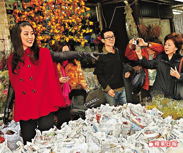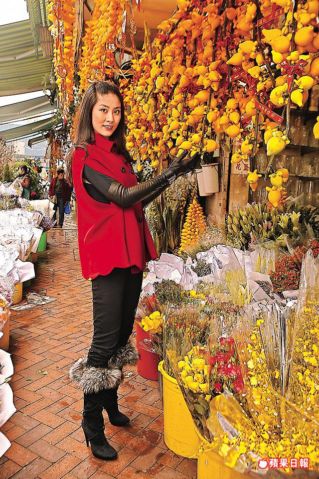 雖然臨近過年,花墟人頭湧湧,但Kelly完全不怕人多,記者見她在幾間花檔看到不同顏色的賀年鮮花時,表現得十分雀躍,而檔主見靚女來買花,特別高興,不但詳細介紹各種年花的意頭,還特別替她揀選又平又靚的年花,Kelly最後買了五代同堂、水仙和蘭花等。新春期間,她會在家開派對慶祝,邀請家人與舊同學等一齊賀年,而大年初一,她會向父母拜年,𢭃大利是。