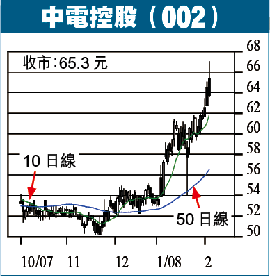 中電(002)繼續成為跌市之升,再創新高。現價其實已到了筆者的目標價,不宜再高追,早前跟筆者建議入市者,亦可考慮在現水平獲利。