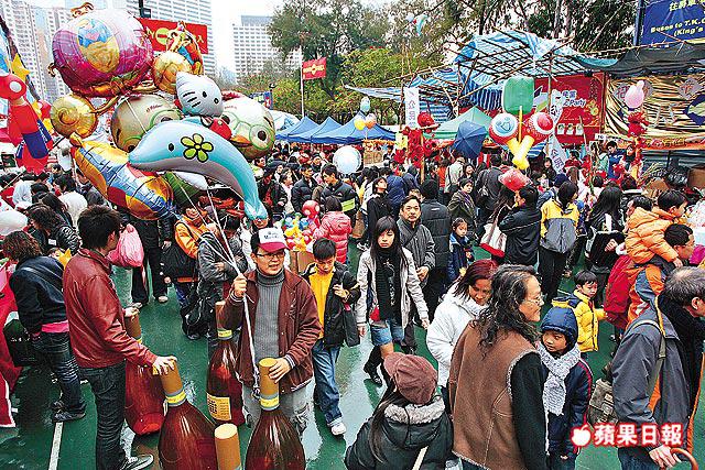 昨日天陰寒冷,但無阻市民逛年宵,維園人潮整日川流不息,叫賣氣氛熱鬧。特首曾蔭權昨日也逛花市,他光顧的花檔負責人梁小姐表示,預計今日可提早沽清年花收檔;賣咕𠱸攤檔的檔主林慶強說,至昨晚已回本,預計維園四個檔位各可賺6至8萬元。