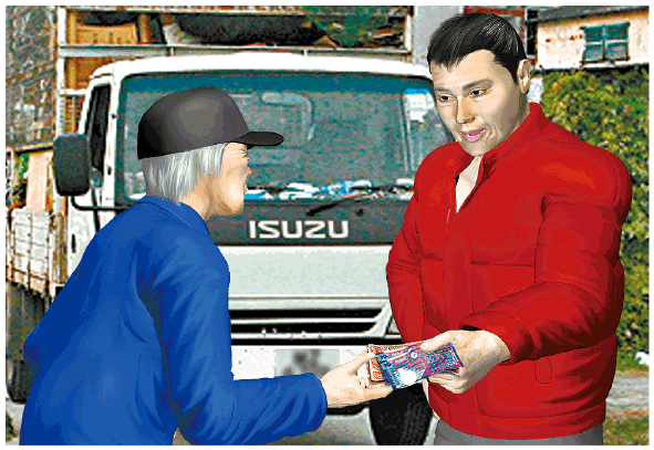 昨午2時55分,姓張39歲司機連同一名跟車工人在附近做完生意,專程前來潘屋村,與黃婆婆交收,將廢料運上車斗,黃婆婆獲242元報酬,非常興奮,隨即由車旁繞往車尾,步向住所歸家。