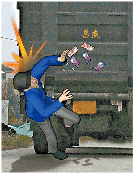 【本報訊】一名拾荒的八旬老婦,多次被家人勸喻勿再操勞,她回稱:「過埋年就唔執㗎嘞。」豈料一語成讖,昨午她在落馬洲潘屋村空地向廢料回收車變賣紙皮及廢鐵共242元後,喜孜孜一邊行一邊數錢,疑專注數錢,未留意回收車開倒車出小路的警號聲,登時被撞倒復捲入車底,腳掌和頭顱被輾爆,當場喪命,只差3天而過不了新年。 記者:陳天華 張珮琪 陳偉良