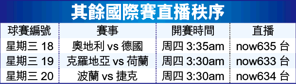 星期三18德國勝[-1](2.25)x 星期三19克羅地亞(平)x 星期三20波蘭(下)3x4