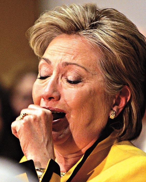 希拉莉首次施淚功,是在上月新罕布什爾州初選前的咖啡聚會。當時,她面臨提名戰兩連敗,有女選民問她競選那麼艱辛,她怎麼能夠保持容光煥發,她若有所感眼泛淚光,說「真的不容易」,但她是為了未來世代而選總統。不夠一個月,形象硬朗的她,又一次眼中有淚。