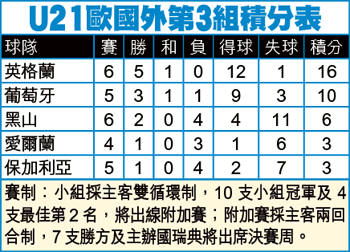 只要小英兵今仗贏波,餘下一場比賽只要多取1分,便肯定壓倒葡萄牙首名出線(見附表),所以小英兵領隊皮亞斯對今仗高度重視,徵召已晉身大國腳的艾朗連儂歸隊,雖然艾邦拉賀提升上大國腳並因傷退隊,但前線亦有占士米拿、謝路美及勞基摩亞等戰將,這批攻擊球員在英超也有常規上陣機會,比賽狀態不成疑問。