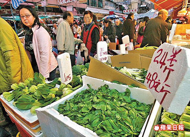 漁農自然護理署資料顯示近日蔬菜批發價持續上升,其中以豆苗升幅最大,由上周五約31元增至本周日的47.1元,增幅約五成,前日維持高企每斤46.6元。