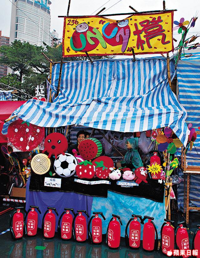 張祝珊英文中學的年宵攤檔上晒港聞,佩服學生不理風雨,仍落力Sell自己設計的「芝心鼠」,值得額外加分獎勵。