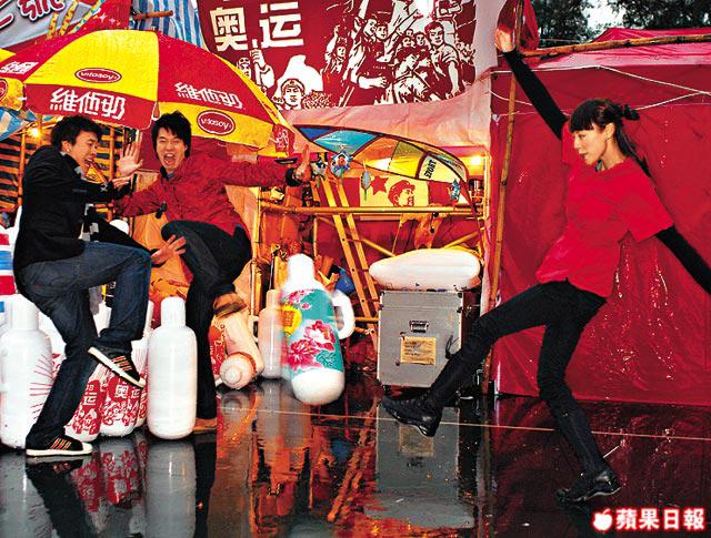 團隊最需要服從。你估Zoie唔知兩位隊友有微言咩?於是來到一檔以奧運為題賣巨型水壺不倒翁的攤檔,實行軍法處置。她扮晒叫兩位男士走埋水壺旁揀件靚的,但其實唔聲唔聲當自己打保齡一樣,一腳踢樽埋去。