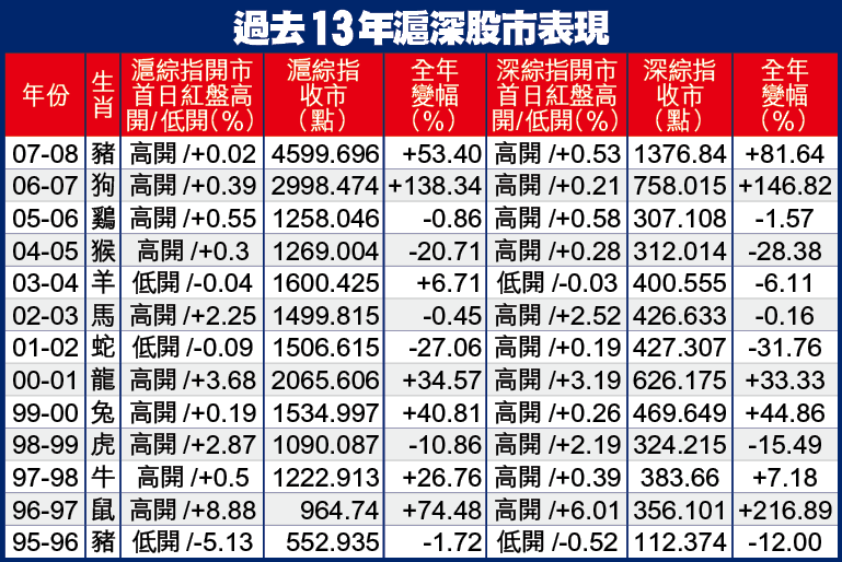 滬綜指豬年僅升53%