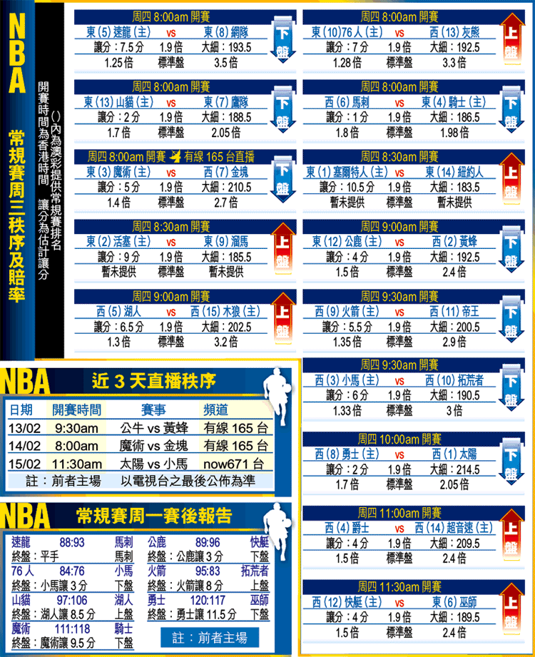 騎士「大帝」勒邦占士又發威,不過今次並非以「得分王」的風範協助騎士於周一取勝,而是將得分重任委於隊友,自己則充當「鎖匙人」角色,領軍作客以118:111力克魔術!
