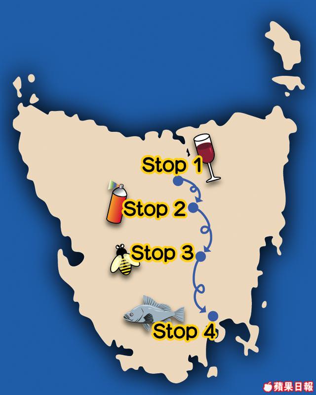 以自駕遊方式暢遊澳洲塔斯曼尼亞最好不過,行程隨你選擇,道路規則又與香港相若,由北玩到南,在朗塞斯頓(Launceston)出發,至首府荷伯特(Hobart)為終點,沿途有不少補給站及景點,車程不長,頭站有風景宜人的酒莊及美食;中途瘋狂購物,買了不少當地土產如蜜糖、三文魚等。最不可思議是去到一個叫Sheffield的古鎮,滿街都是像真度極高的壁畫,連Eason也獲邀揮筆露兩手。而我?都是忍手,免得污染了這小鎮。