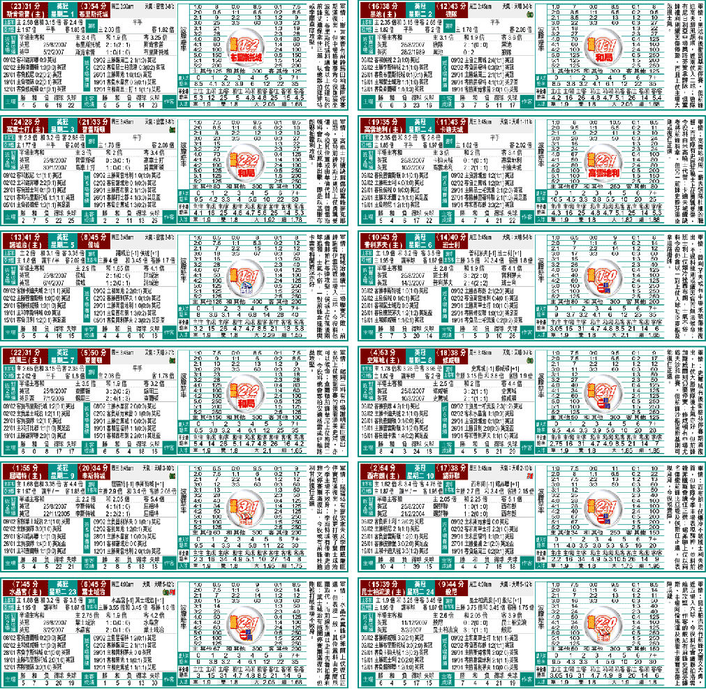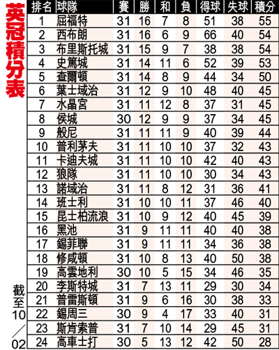 星期二8史篤城勝(1.78)x星期二9屈福特勝(1.68)x星期二10西布朗勝(1.62)3x1