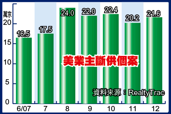 樓價持續下滑,令借貸人融資更加困難,驅使房貸違約率不斷惡化,聯儲局官員估計,未來兩年會有200萬名借貸人面臨每月還款息率被調高的困境。