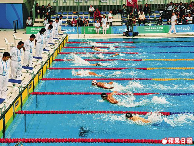 5.贊助奧運的OMEGA中國奧運計時總監ChristopheBerthaud話游泳健兒聽到槍聲起跳一刻的聲音距離時差都計算在內,還有各種觸板電子感應系統和每秒百張數碼攝影,許多是首次用上。