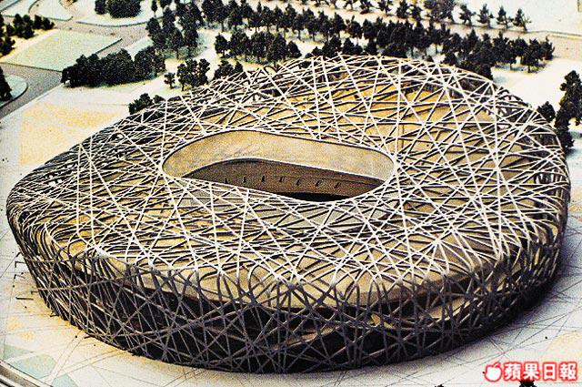 水立方對面,同樣在天安門中軸線上,充滿戲劇性的巨大「鳥巢」國家體育場,04年受「瘦身」衝擊,那個自動開合的天幕被刪除,投資被控制在35億元人民幣內,令她從驚世地標變成不倫不類,評論也認為鳥巢外殼跟內部場館全無關係,成為敗筆!美國《時代》周刊近日評選出「07年世界十大建築奇迹」就欠說服力了。反而近鄰最神秘的看似無窗「數字北京」奧運控制中心卻令人想入非非,像未來的科幻之城。說回早前的大熱焦點,耗資逾26億元人民幣的「巨蛋」國家大劇院,老北京朋友身入其中報告是「非常嘈吵,手工差劣」,一個月唔用都要花幾十萬元保養,他嘆:「從此垃圾節目會不斷出現。」但佢話上海世博的中國館才是絕頂醜陋,媲美香港文化中心!倒是世上最令人驚愕擔心的「危樓」──中央電視台總部大樓,兩座巨大塔樓傾斜互靠,頂端以連廊相接,儘管她造價最貴,約50億人民幣,但她將成世上最激進的建築典範!