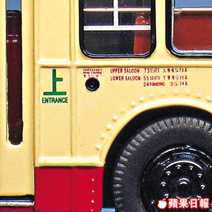 仲記得細個嗰陣,每次搭巴士過海都只係見到嗰啲兩軸巴士,但某日經過紅隧口,竟然見到一部三軸九巴出現,嗰一刻真係好開心。長大後先知道佢原來係DennisDragon12米型號,而且仲要係率先到港嘅Demo車之一。今次呢部模型車照足當年嘅真車去做,唔只車頭一樣有個好大Size嘅廠徽,就連下層車尾凹入去嘅部份都做埋,而路線牌仲要顯示當年巴士公司專門用嚟試行新車嘅112號線,夠Classic!