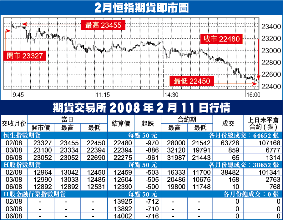 期指在鼠年第1個交易日低開123點,反彈乏力,承接上周三弱勢下跌,加速跌破22800支持,以22480低收,急挫970點,低水136點,成交合約有6.3萬張。