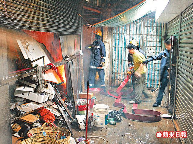 【本報訊】油麻地一幢大廈後巷一個僭建貯物室繼前日被人虛報火警後,昨凌晨懷疑遭人縱火,大批雜物起火焚燒,10多名大廈住客疏散幸無人受傷。火警發生三小時後,大廈一名男住客墮樓身亡,警方一度懷疑他與縱火案有關,惟調查後相信死者精神病發跳樓輕生,縱火及跳樓事件發生在同一地點純屬巧合。 記者:黃江奇