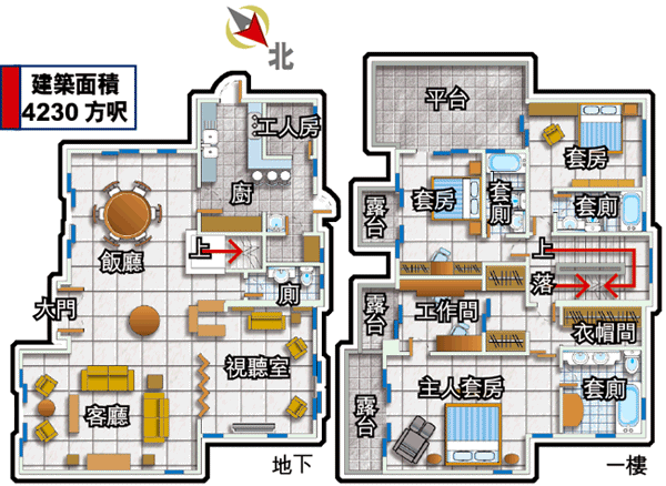 面積:4230方呎;平台約500方呎、花園1774方呎及天台約2000方呎