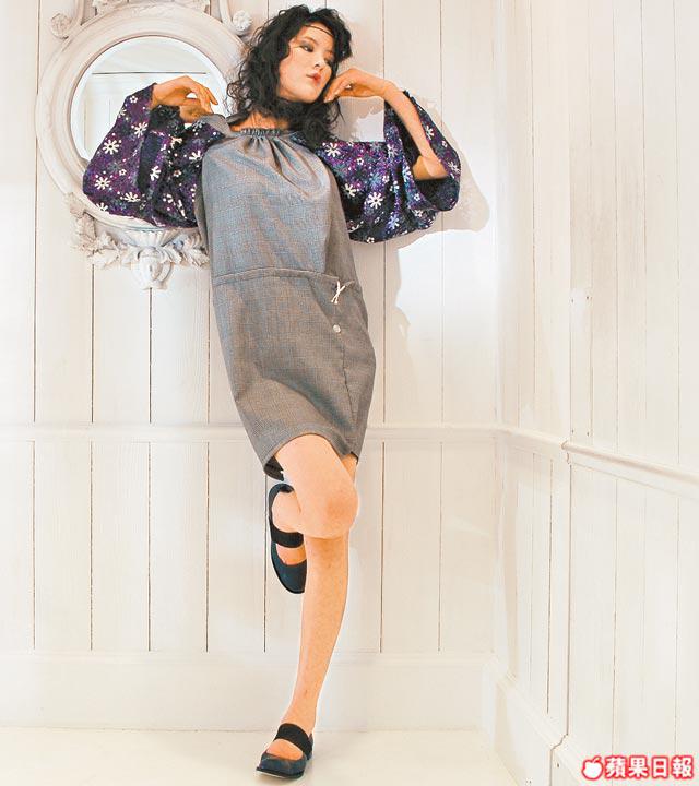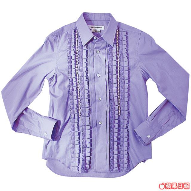 CommedesGarcons灰色西裝褸×紫色珠片闊袖OnePiece$8,850、深藍色皮鞋$3,250