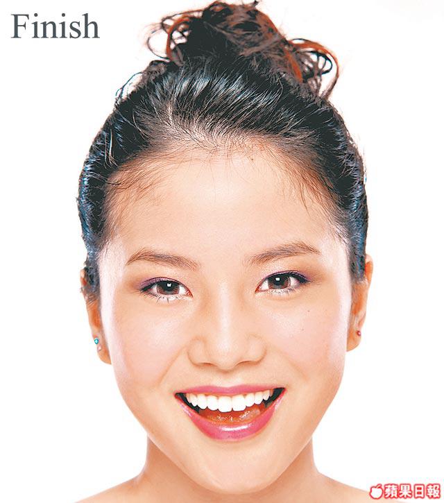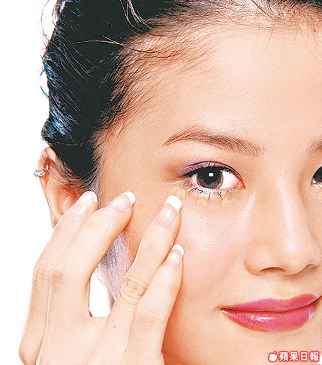3.補上遮瑕膏,並以無名指印開。額上的暗瘡,亦需要補上遮瑕膏。