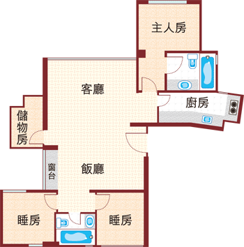 間隔:3房2廳(連儲物房)