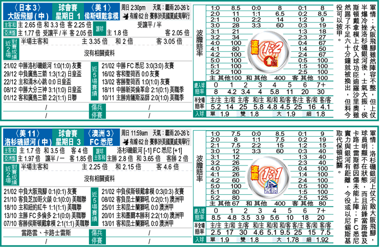 飛腳上仗在缺7名主力下仍能擊敗洛杉磯銀河,主要因為後者狀態太差,今鬥戴拿模相信面臨考驗,因此,就算新兵如中場佐佐木勇人及山崎雅人等表現不俗,仍不宜高估。