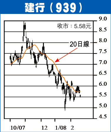 近期不少大行看淡內銀股,星俠認為除非再有壞消息出現,否則現水平可吸納建行,短炒目標6.30元。