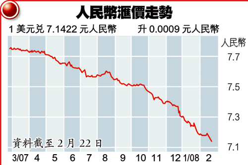 李慧芬認為人民幣會受惠奧運效應而持續向好,即使奧運過後,外來投資亦會增加,當整體經濟繼續增長,支持人民幣強勢,市場甚至認為每美元兌5元人民幣才是合理水平,年底前人民幣可望最少升值5至8%,是穩健之選。