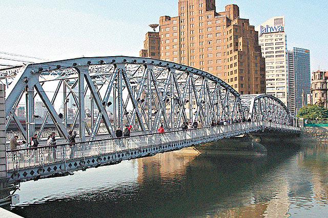 見證上海百年滄桑的外白渡橋(圖),位於上海蘇州河滙入黃浦江口附近,建於1907年,是上海首座全由鋼材建成的大橋,全長104米,是舊上海的標誌性建築物之一,聞名中外。瓊瑤原著的劇集《情深深雨濛濛》、劇集《上海灘》等均在此取景。古橋現時每日車流量2.7萬輛次。但明年完成大修後,大橋將不再行車,僅為行人服務。