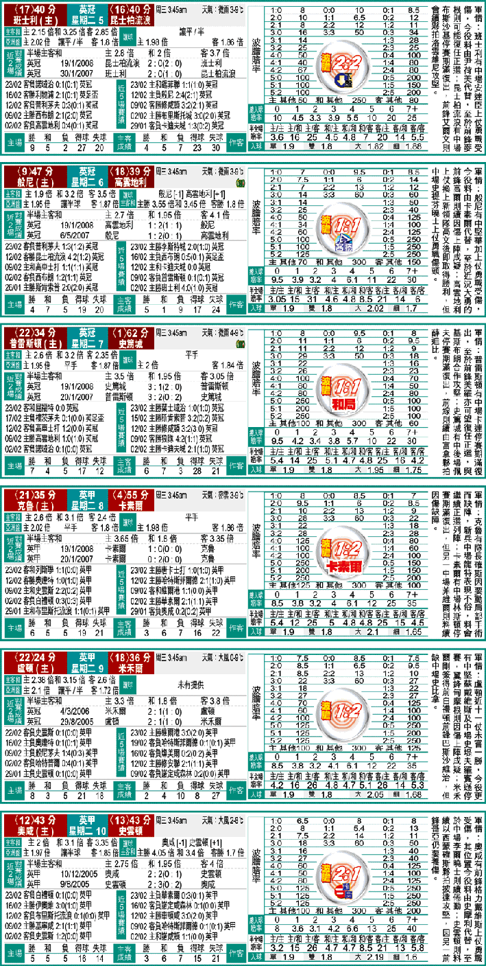 星期二5班士利大(1.82)x星期二6高雲地利勝[+1](1.8)x星期二8卡素爾(平)3x1