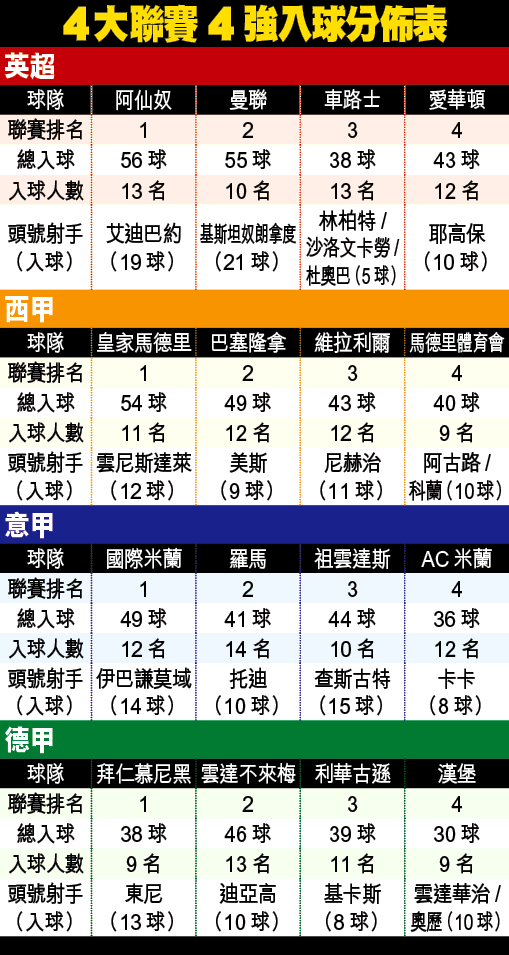 自文仙尼入主國米以來,球隊越來越注重進攻。今季暫時也以49球成為意甲入球王,這個數字與其餘4大聯賽強隊相比,也絲毫不丟人。然而,相比羅馬的14人取得入球,國米有依靠前鋒入波的趨勢,伊巴謙莫域(今場受傷)、告魯斯和蘇亞素分別取得14、10和6球。
