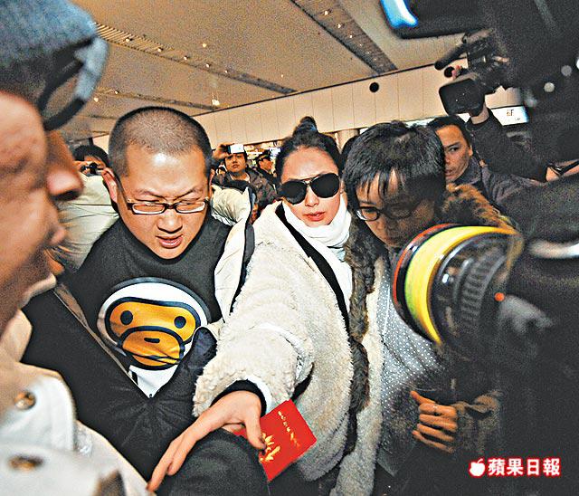 不停被追問可接受陳冠希道歉的阿嬌,一直黑臉不發一言,雖然架上墨鏡仍難掩憔悴。幾經推撞才擠進保母車離開機場後,Twins直接被送到天下第一城內的正安宮酒店。據知昨日的招商活動,特步主要展銷今年秋季新產品,阿嬌因淫照事件形象插水,早前已被香港廸士尼抽起宣傳片,不過特步卻早已與廸士尼洽談好合作推出的廸士尼運動服系列。