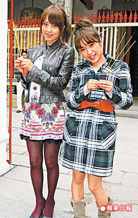 酷似鄧麗欣(Stephy)的日本人氣AV女優吉沢明步及朝美惠香,前日抵港為亞視拍攝節目,她們昨日到山頂和文武廟參觀,雖然衣着保守,但無損其受歡迎程度,10多位男fans到場支持,部份更拿着銀紙要求簽名。