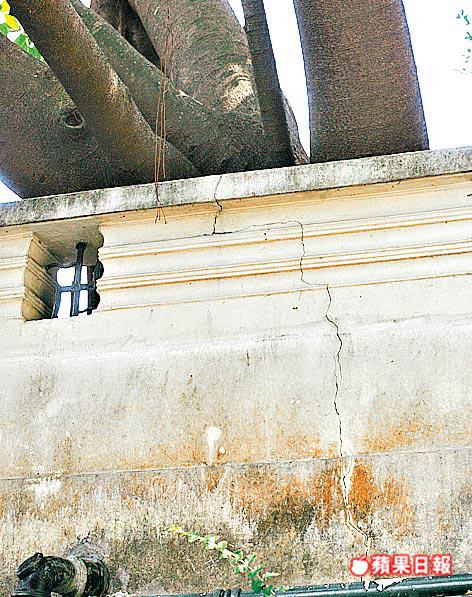 【本報訊】錯種一棵樹為禍深遠。香港大學校長徐立之近日發現府邸範圍內一棵種植了逾40年的印度橡樹,其根部火速生長,纏着府邸內具歷史價值的圍牆,令圍牆出現多條裂痕,長此下去勢危及府邸大屋的架構。港大校方近日向地政總署申請斬去大樹,或移往他處,惟最終被政府否決,令港大高層頭痛不已。 記者:梁美寶
