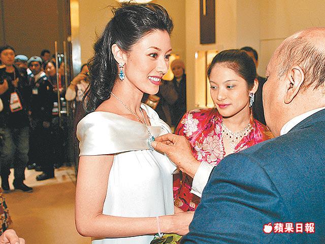 李嘉欣昨日應邀到澳門出席國際珠寶鐘錶展活動,她分別戴上兩套貴重首飾,包括價值600萬美元(約4,700萬港元)的鑽飾,及一套價值40萬美元(約311萬港元)的鑽飾,珠寶商老闆對借出的鑽飾甚為緊張,當嘉欣戴上影相之際,老闆突然出手觸摸她胸前的鏈墜,嘉欣即被嚇到,一臉尷尬。