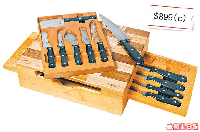 38.3×34.3×12.5cm大型砧板,附有5把切芝士刀及5把廚刀。