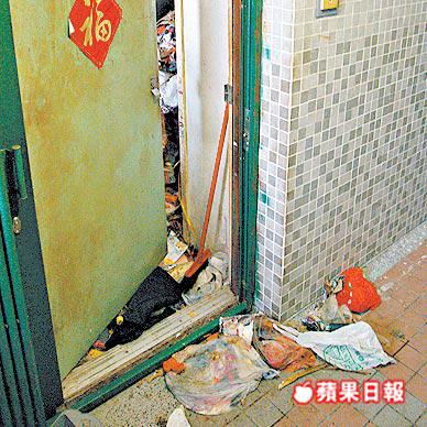 被街坊形容為垃圾屋的單位位於啓田邨啓信樓5樓(右圖),鄰居談及過去幾個月活在惡臭中大嘆無奈,昨日事發時單位木門虛掩,從狹窄門縫可見屋內雜物已堆至門口,瀰漫撲鼻惡臭。