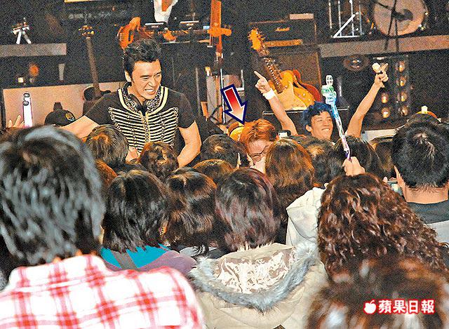 鍾鎮濤(阿B)前晚在紅館開騷,請來老友譚詠麟做表演嘉賓,二人唱《愛情陷阱》時由台上唱到落觀眾席,令全場氣氛高漲;不過,其間有男觀眾卻high到把阿倫扯落凳,繼而又強吻他,嚇得阿倫大叫抽水速逃,阿倫今次可謂「這陷阱、這陷阱,偏我遇上。」