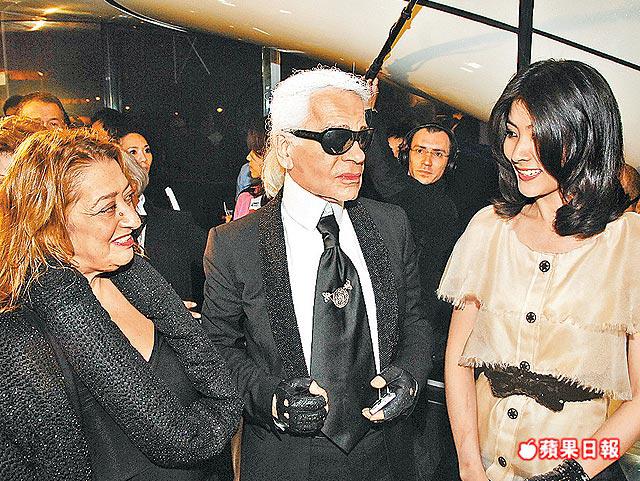 KarlLagerfeld與兩位女星在晚上九時多入場,雖然有大批保安、助手護航,但仍然遭中外傳媒包圍,引起小混亂。KarlLagerfeld說:「我很支持藝術。」問他對香港的看法,他說:「夜色很美。」