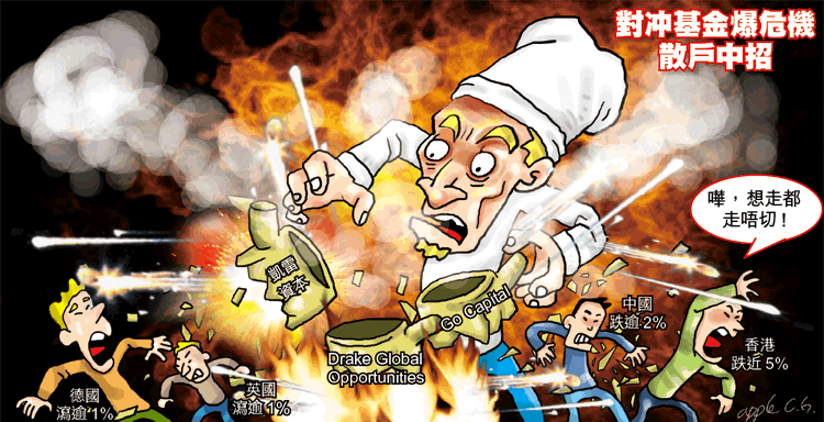 事實上,除凱雷外,其他對冲基金日前已相繼出事。ING宣佈暫時凍結旗下兩隻投資按揭債券的新西蘭基金,禁止客戶贖回資產,理由是環球信貸環境惡劣,經營日益困難,當基金解凍後,公司或會出售優質資產以應付客戶的贖回潮。此外,美國對冲基金DrakeCapital亦停止核下的DrakeGlobalOpportunities基金的客戶贖回,並有意關閉三隻對冲基金;荷蘭大型對冲基金GoCapital亦決定禁止客戶贖回其基金GlobalOpportunities,避免基金因流動資金不足而倒閉。