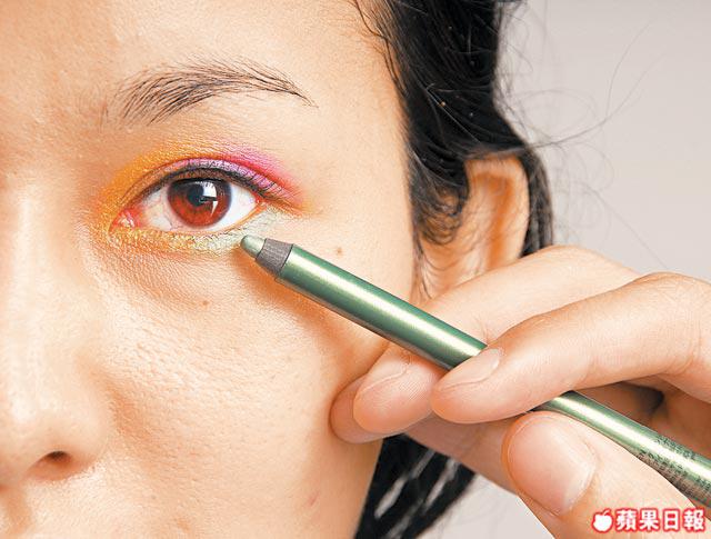 4. 最後用綠色眼線筆畫下眼線。