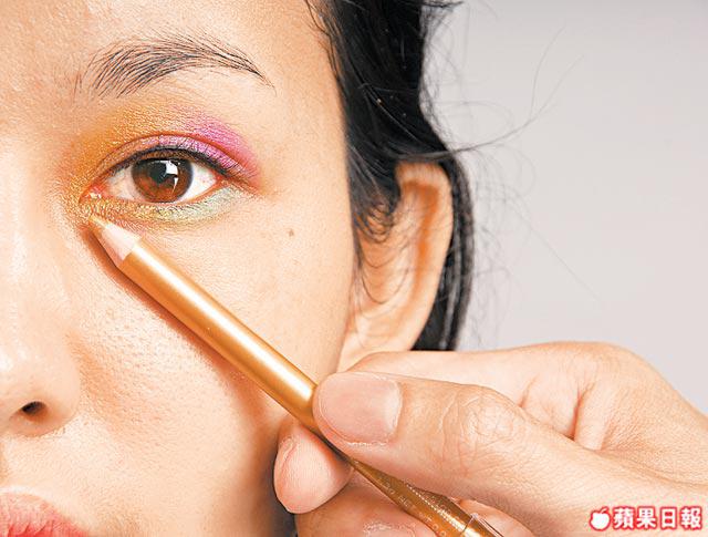3. 再於眼頭及下眼線眼頭位置塗上金色,作Highlight和漸變效果之用。