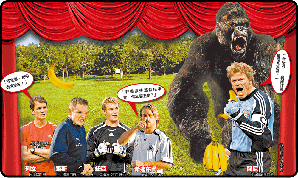 舊時黃飛鴻靠打猩猩王為樂,香港早前亦有「猩猩王」鬧得滿城風雨,但德國「猩猩王」簡尼卻係殿堂人物,連德國足總都破例幫佢喺搞告別賽致敬,希望一蕉傳一蕉;不過,求大俠心諗呢隻「蕉」可以傳畀邊個呢?