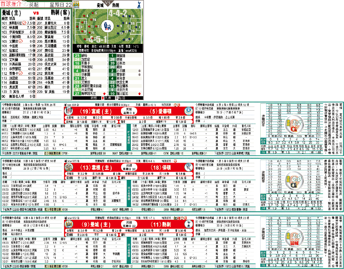 08年曼城於主場打英超,未曾贏波,故周日迎戰剛於上周三歐協盃與荷甲燕豪芬惡鬥完120分鐘的熱刺,一於博他們反底贏波,「讓球」平手可捧,兼補1注入球「細」。(球賽編號:星期日22;now632台今日11:59pm直播)青蛙仔