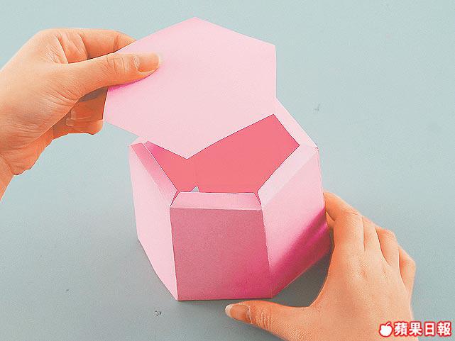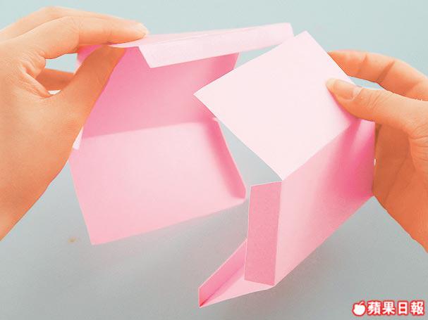 B.把底部的五邊形紙,貼在較窄身一邊。