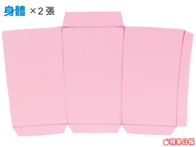 A.把兩張身體的紙依摺痕向內摺,黏合成五邊形。