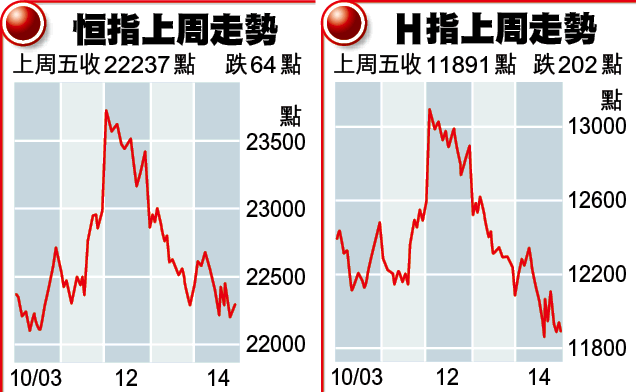 由於港股受外圍因素主導,即使藍籌股宣佈的業績亮麗,亦難望力撐大市,恒指本周勢將跌穿22000點,並反覆下試21709尋找支持,月底期指結算前或會出現季結粉飾櫥窗效應,為大市帶來曙光。