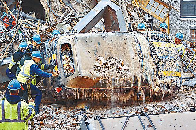 在其中一幢建築物開酒吧的萊格雷科(JohnLaGreco)說:「如果不是因為看欖球賽,我慣常會早點回來,那麼我就會被壓死了。」消防部門出動搜索犬、熱能和聲音探測器,在現場瓦礫搜救。紐約巿建築局紀錄顯示本月4日有人投訴吊臂安全有問題,但檢查員巡查後沒有發現問題。負責建築工程的公司指今次是「一宗很奇怪的意外」。