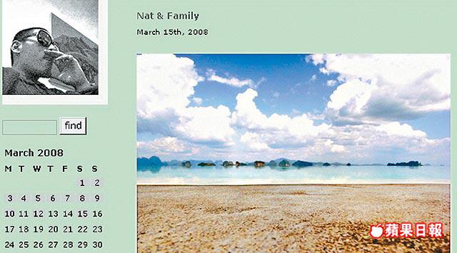 Juno在最新一篇網誌以「Nat&Family」為題,張貼一張海島風景照。他甫開首便感謝友人Nat提供一個安樂窩給他們,及跟他度過了一段瘋狂時光,他說:「我十分感謝你及你的家人對我們的關照,令我們非常享受。」Juno又指那裏簡直是天堂,又跟Nat約定他日再見。能在良辰美景與友人共歡,Juno當然樂而忘返了。