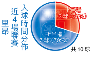 數據上,里昂近4場聯賽共有10個入球,當中有7球在上半場取得;而且里昂在法足盃晉級的兩場比賽,共取得的5個入球,亦有3個在上半場取得;一於繼續信里昂攻力,「半場主客和」主勝及1.75倍「半全場」主/主可捧。